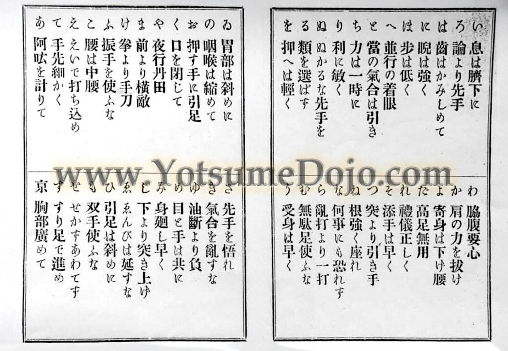 The Daitō-ryū Aikijūjutsu Iroha-kun is one of the first known booklets produced by Okuyama Sensei while he was still a student training under Matsuda Toshimi learning Daito-ryu Jujutsu. The recorded precepts in this manuscript use to be a closed secret passed only to students training. Okuyama Sensei authored this work in collaboration with his teacher Matsuda to make the once secret precepts more available.